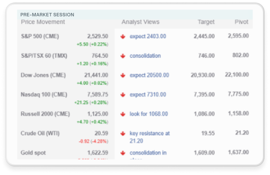 Analyst view offers the combination of senior analyst expertise and automated algorithms. TC proprietary pattern recognition is constantly monitoring the market to offer actionable trading plans based on award-winning methodologies that are validated by expert market technicians before being published.