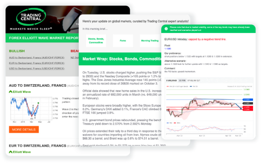 Actionable content to support your investing customers with emerging opportunities, immediately actionable trading plans & expert market overviews. Trading Central’s newsletter service has you covered with everything you need to implement a robust communication strategy tailored to your trades.