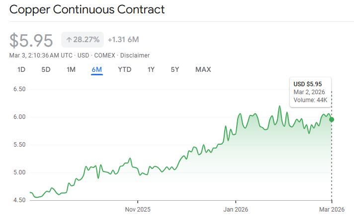 Copper had a strong 2025. It rallied 42% on the London Metal Exchange, making it the best-performing industrial metal on the bourse that year. In January 2026, prices reached a record high of $13,387 per tonne, crossing the $13,000 mark for the first time in history.