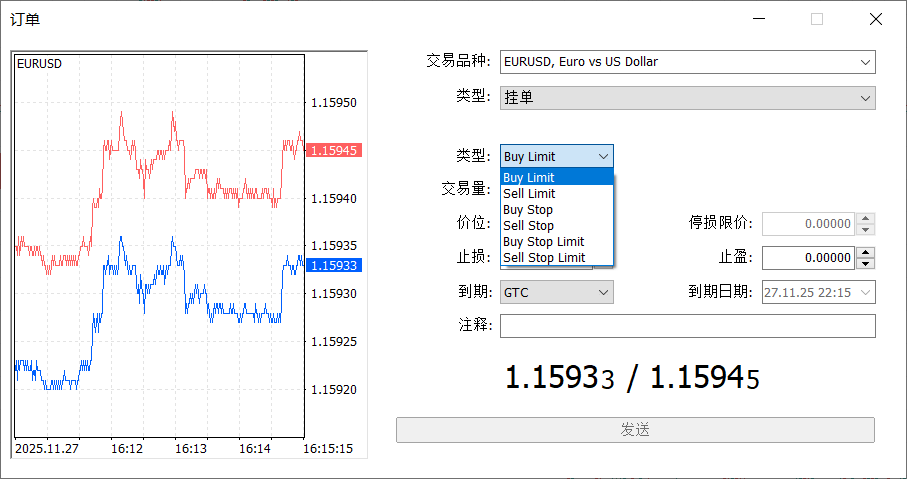 MT5中的订单主要分为两大类:市场执行与挂单交易。市场执行指按照当前市场价格立即成交;挂单交易则是在价格触及您预设的条件时自动开仓。