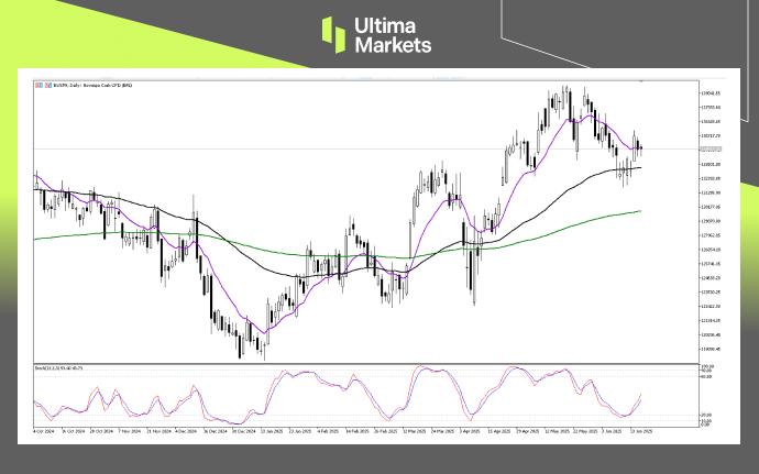 After a steep decline culminating in a bottom around June 10th, the index experienced a strong V-shaped recovery. However, this recovery has stalled, and the index is now in an extremely tight consolidation phase. The convergence of all three moving averages within a narrow price range is a powerful indication of equilibrium and indecision, often preceding a significant expansion in volatility.