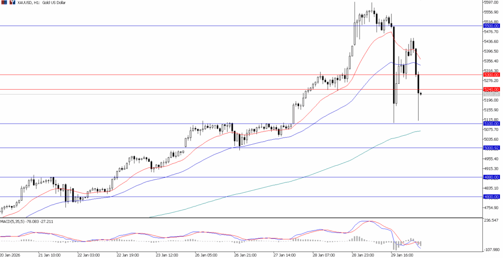 Gold’s historic run hit a brick wall. After spiking to a new record of $5,595 in early Asian trading yesterday, prices collapsed to lows near $5,104 during the NY session.