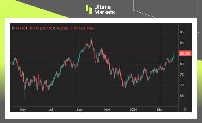 週二,因烏克蘭襲擊俄羅斯能源設施與中東緊張局勢升溫,導致供應中斷可能,WTI原油期貨價格飆至每桶85美元以上,達到自10月最高水準。