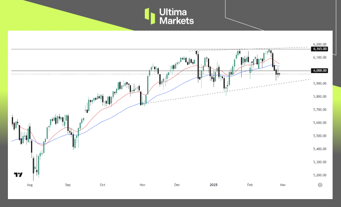 貿易緊張局勢加劇,加上聯準會維持緊縮政策,使全球金融市場震盪加劇。S&P 500 期貨雖於早盤試圖回升,但未能重新站上6,000點大關,連續第五個交易日收低。